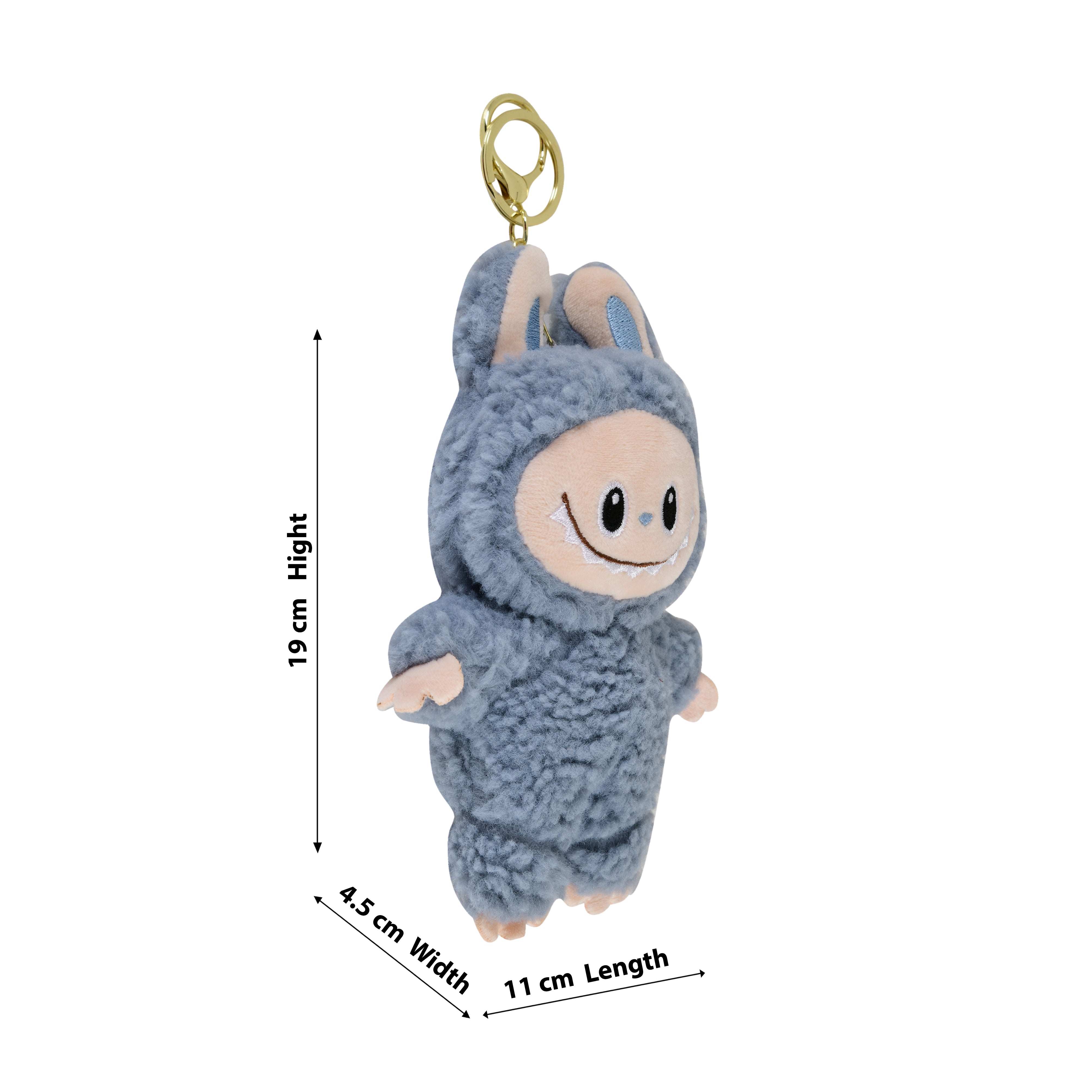 Bring the Labubu vibe that’s trending across India to your everyday carry. This plush keychain captures the playful monster look—long ears, big smile, and fluffy sherpa texture—in a compact, lightweight accessory. The face is fully embroidered (no hard plastic parts) for a premium, child-friendly finish, while the soft teddy-style body makes it fun to squish and hold. A sturdy gold-finish ring with a short chain secures your keys and clips easily to handbags, backpacks, pouches, or even your car’s rear-view mirror. The plush is neatly stitched for durability yet weighs only 50 g, so it won’t add bulk. At 22 × 11 × 5 cm, it’s large enough to be eye-catching in selfies and Reels, making it a perfect fashion accessory and photo prop that taps into the Labubu craze.
