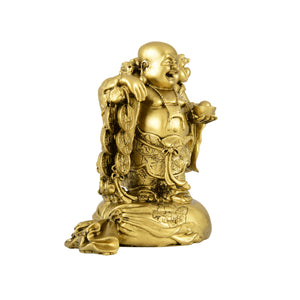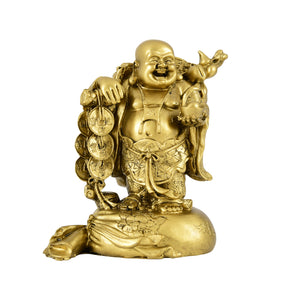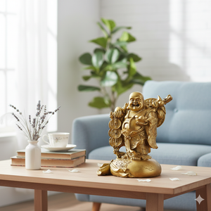 This beautifully crafted Laughing Buddha Statue is a symbol of joy, prosperity, and good fortune. The idol depicts the Laughing Buddha standing on a sack of coins while holding a tree of coins, signifying abundant wealth and continuous financial growth. The sack represents fulfillment of desires, while the tree of coins symbolizes prosperity branching out in all directions. His cheerful face and relaxed posture radiate positivity and invite happiness into any space.