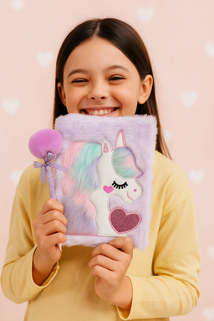 Make writing magical with the Magical Unicorn Plush Diary Set. This charming diary comes in a soft lavender furry cover with a dreamy unicorn design, perfect for kids who adore magical creatures and pastel colors. Paired with a fluffy purple pen topped with a bow, it turns journaling, doodling, and note-keeping into a fun and creative adventure. An adorable stationery set that doubles as the perfect gift!