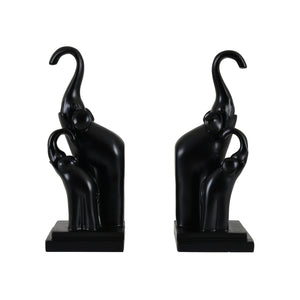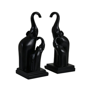 The abstract contemporary design emphasizes elegance, family bond, and symbolism. Handcrafted detailing highlights the smooth curves and subtle textures of the elephants’ bodies, while the matte black finish lends a modern, minimalist, and luxurious appeal. Their dual functionality as bookends adds practicality without compromising aesthetic value.