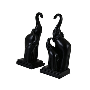 The Majestic Elephant Figurine Set of two embodies wisdom, strength, prosperity, and protection. Crafted from premium polyresin, each piece features a smooth matte black finish and depicts an adult elephant with its calf in a contemporary abstract style. The raised trunks are a traditional symbol of good luck, adding both decorative and meaningful significance to the set.