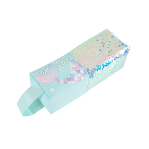 Add sparkle and charm to your stationery collection with this Aqua Blue Mermaid Sequin Pencil Pouch. Designed for kids, students, and anyone who loves a bit of magic, this pouch blends playful style with practical functionality. The top half features soft aqua-blue fabric with a mermaid tail graphic and “Mermaid” text, while the bottom half dazzles with reversible holographic sequins that change color with a simple swipe.