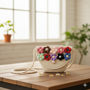 This Mini Cotton Woven Tote Bag is a charming and practical accessory for women who prefer compact yet stylish handbags. Handcrafted from premium cotton, it features a soft cream base beautifully decorated with colorful handwoven floral embellishments for a playful, vibrant touch. The flap is secured with a chic magnetic pearl button closure, adding elegance while allowing quick and convenient access.
