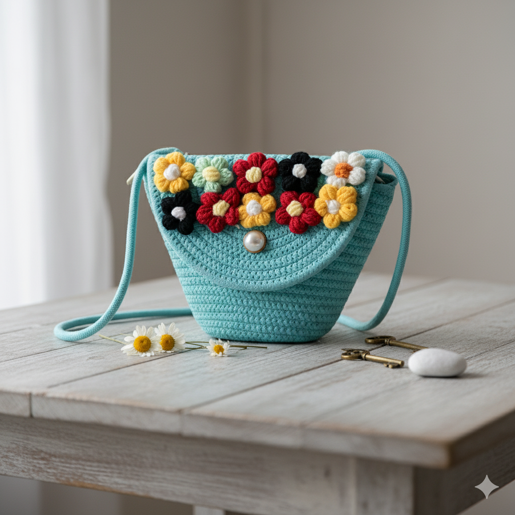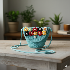 This Mini Cotton Woven Tote Bag is a charming and practical accessory for women who love compact yet stylish handbags. Handcrafted from premium cotton, it features a crisp white base highlighted with colorful handwoven floral embellishments that bring a playful and vibrant touch. The flap is secured with a chic magnetic pearl button closure, enhancing its elegance while ensuring quick and easy access.