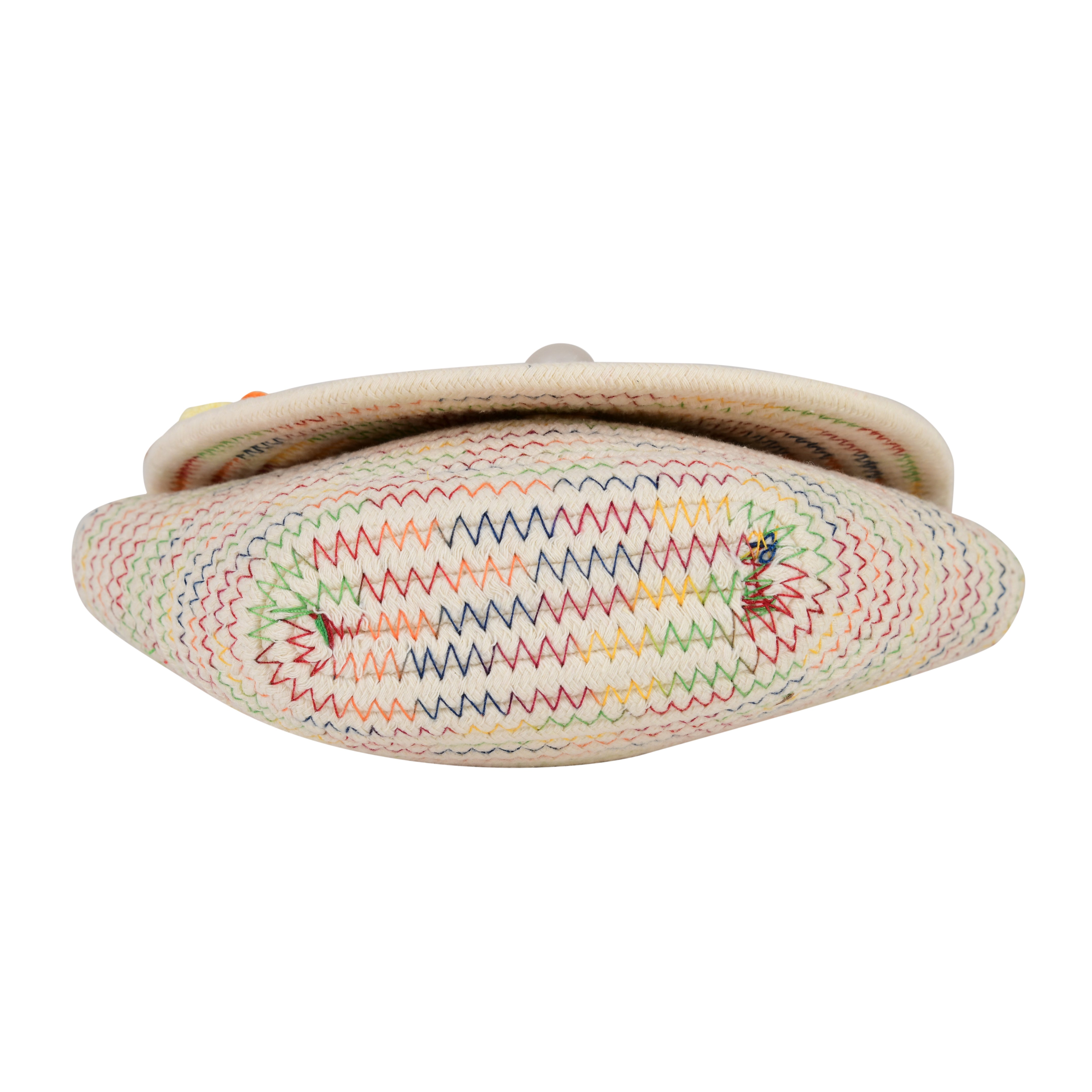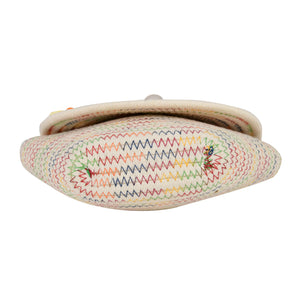 This Mini Cotton Woven Tote Bag is a compact yet stylish accessory designed for women who prefer elegance in a smaller size. Handcrafted from premium cotton, it features a cream base with colorful handwoven floral embellishments, adding a playful and vibrant charm. The chic flap with a magnetic pearl button closure enhances its appeal while ensuring quick access to your essentials.