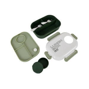 Multi compartment Silicon Lunch Box- BPA Free-Green & White