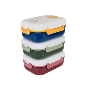The lunch box features multiple compartments for separating dishes, along with a small detachable mini box for sauces, dips, or snacks. Its airtight seal prevents leakage and odor, ensuring a mess-free experience. Compact yet spacious, it easily fits into school bags and office totes, making it a reliable everyday companion.