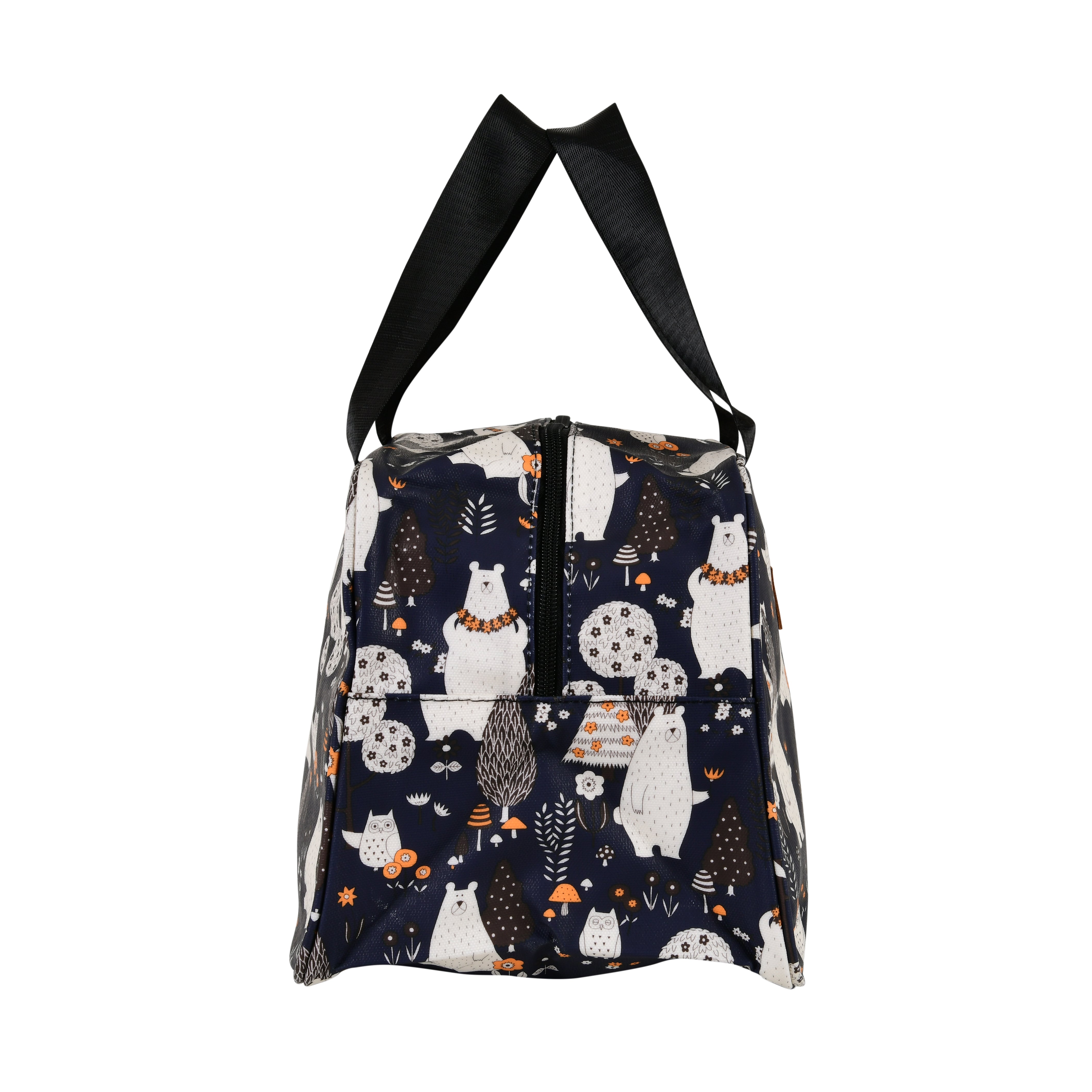 Make lunchtime fun and stylish with this Navy Blue Polar Bear Thermal Insulated Lunch Bag. Featuring an all-over print of cute polar bears, trees, and florals in shades of white, orange, and brown on a navy blue base, this bag blends charm with practicality—perfect for both kids and adults.