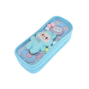 Pen/Pencil Pouch-with soft toy labubu and badge- Blue