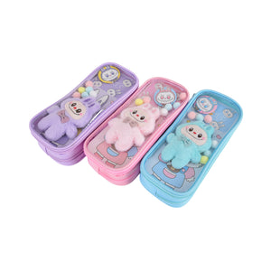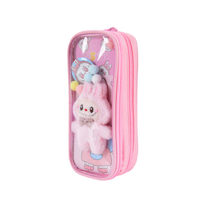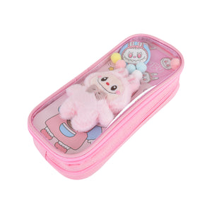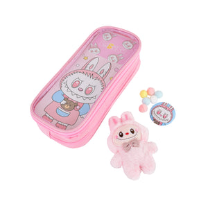 Pen/Pencil Pouch-with soft toy labubu and badge- Pink