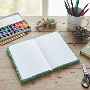 Soft, high-quality faux fur (polyester) in a charming deep forest green color, giving the diary a luxurious, tactile feel.