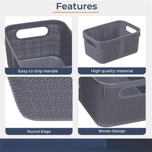 Premium Multi-Purpose Square Textured Storage Basket Set with Handles Grey