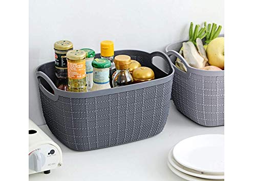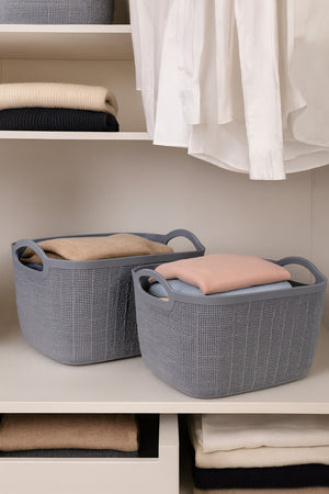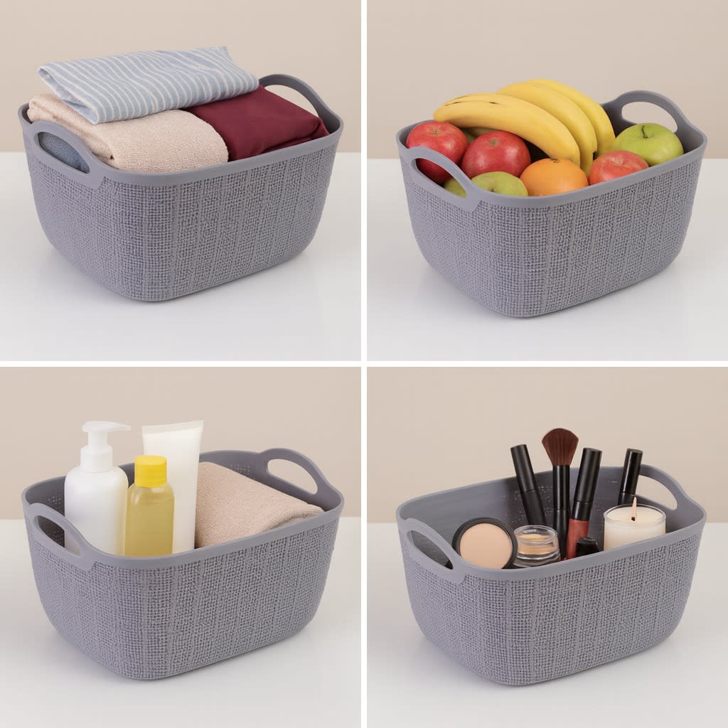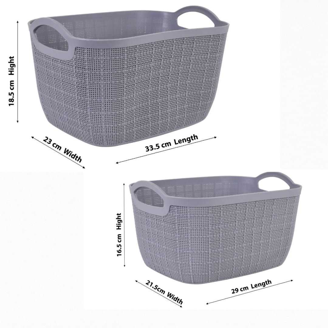 Premium Multi-Purpose Rectangular Textured Storage Basket Set with Handles (Grey Color)
