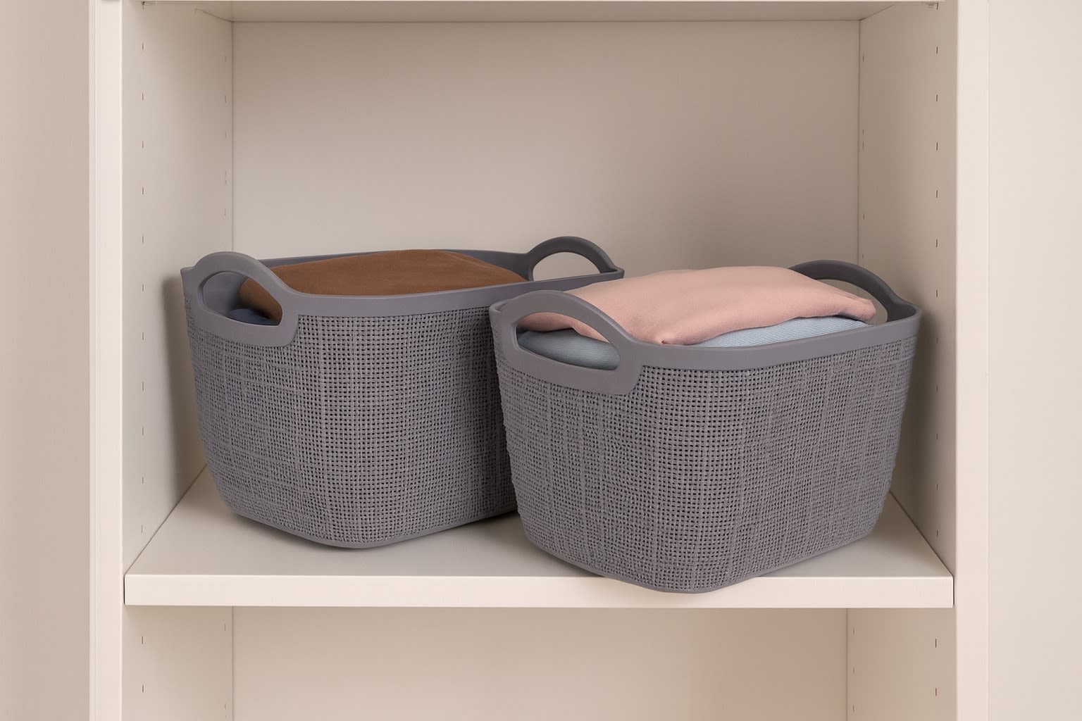 • Items Included: 2 Rectangular Storage Baskets with Integrated Handles