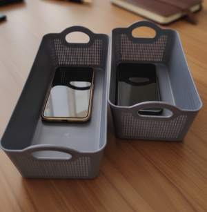 - Grey organizer with handles