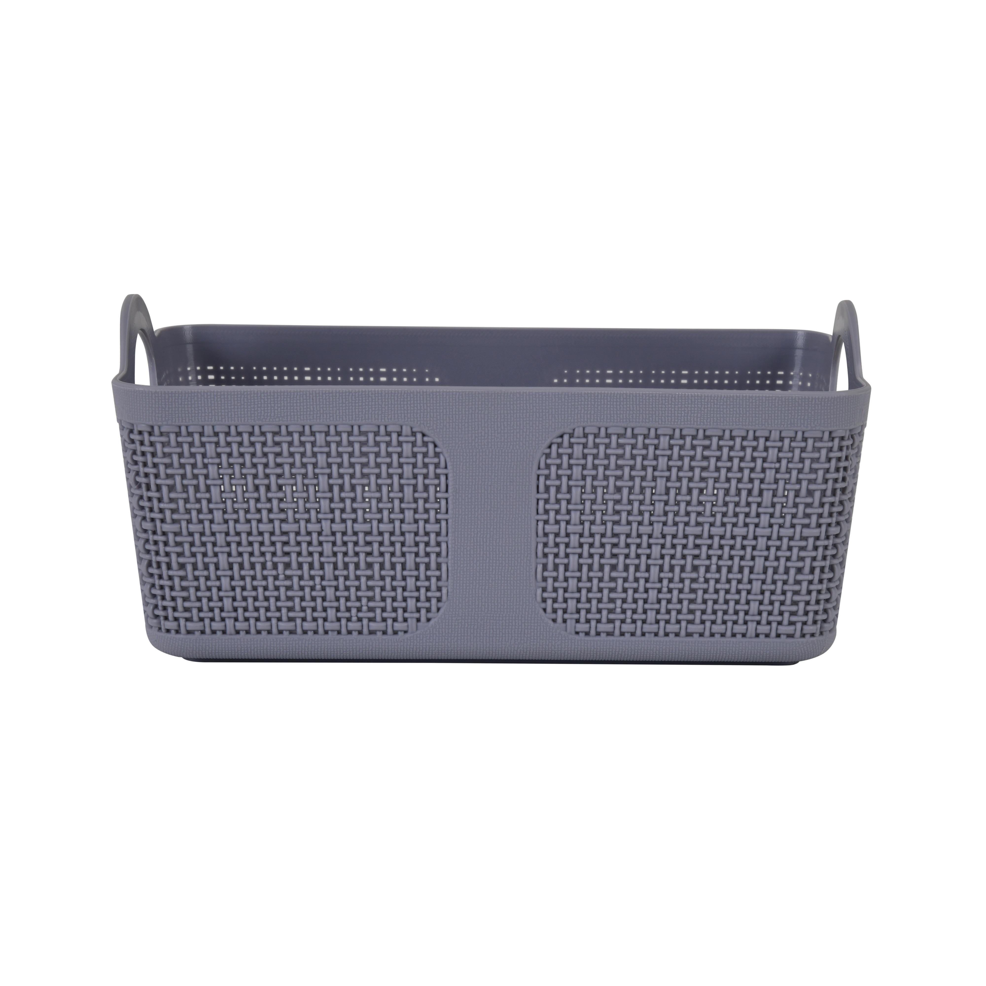 Premium Multi-Purpose Rectangular Woven Storage Basket Set with Handles (Grey Color)