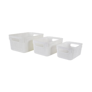 Compact yet spacious, the set is ideal for versatile use across the home or office – whether for clothes, toys, toiletries, groceries, stationery, or books. Their nestable design ensures space-saving storage when not in use, while the sleek white finish makes them a decorative accent in any setting.