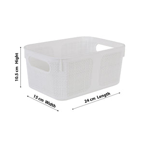 This Premium Square Textured Storage Basket Set is designed for modern storage needs with a sturdy yet stylish build. Made from high-quality durable plastic, these baskets feature a woven-textured grid pattern that enhances durability while providing breathability to keep items fresh.