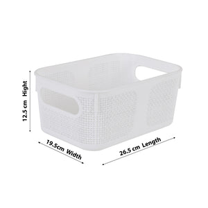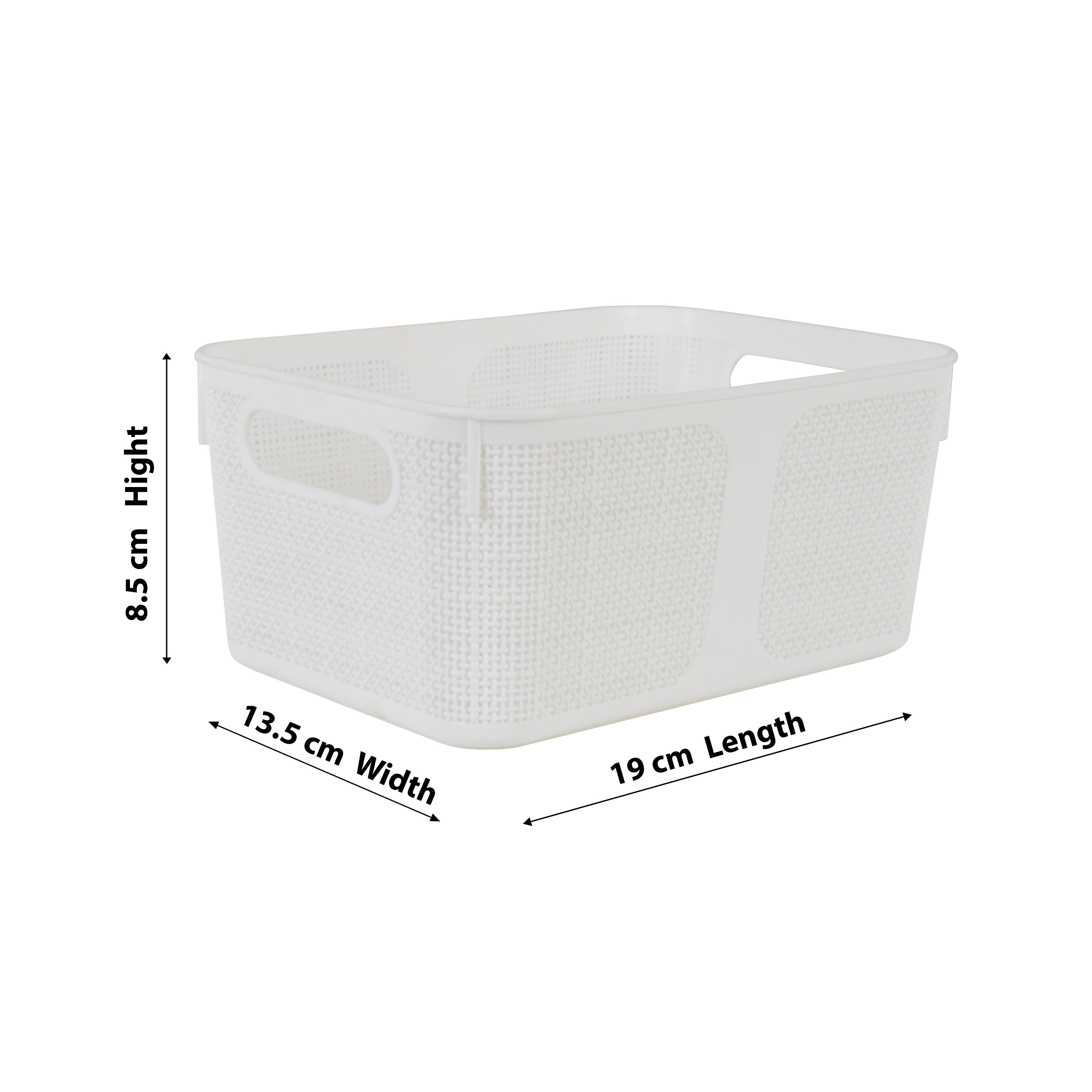 Premium Multi-Purpose Square Textured Storage Basket Set with Handles (White)