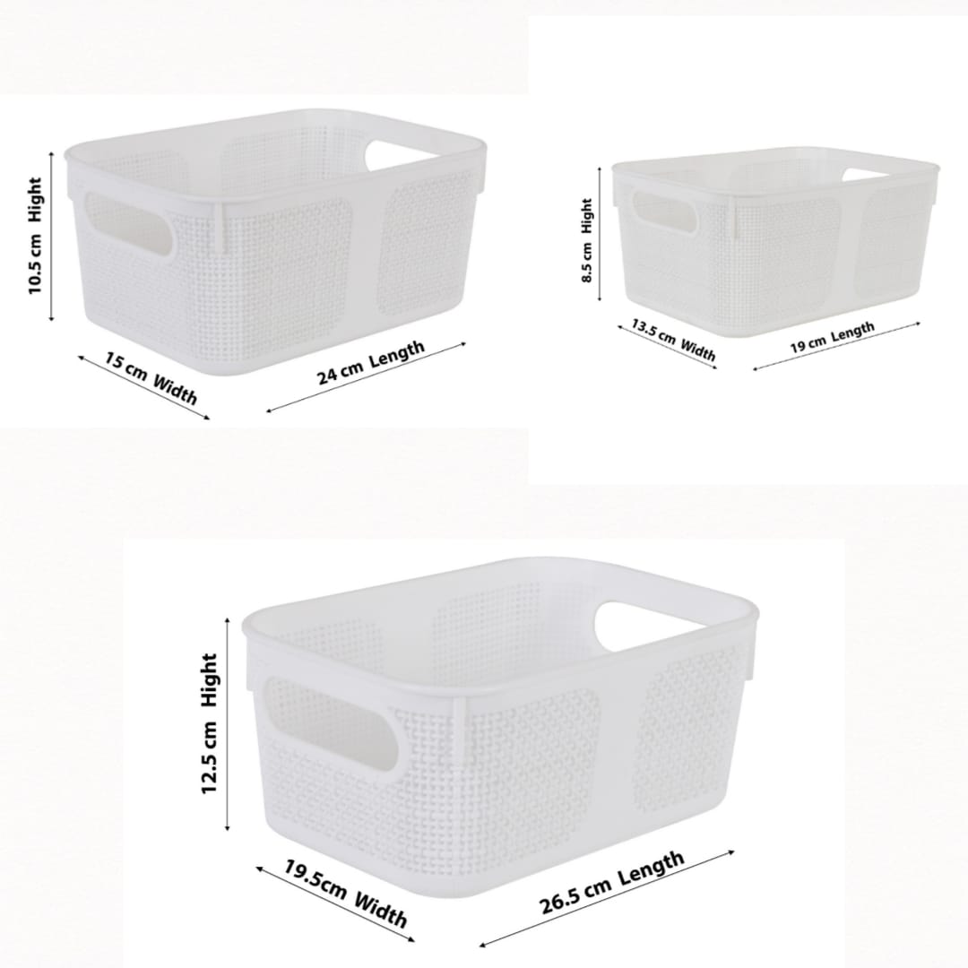 • Pack of: 3 Baskets (Large, Medium, Small)