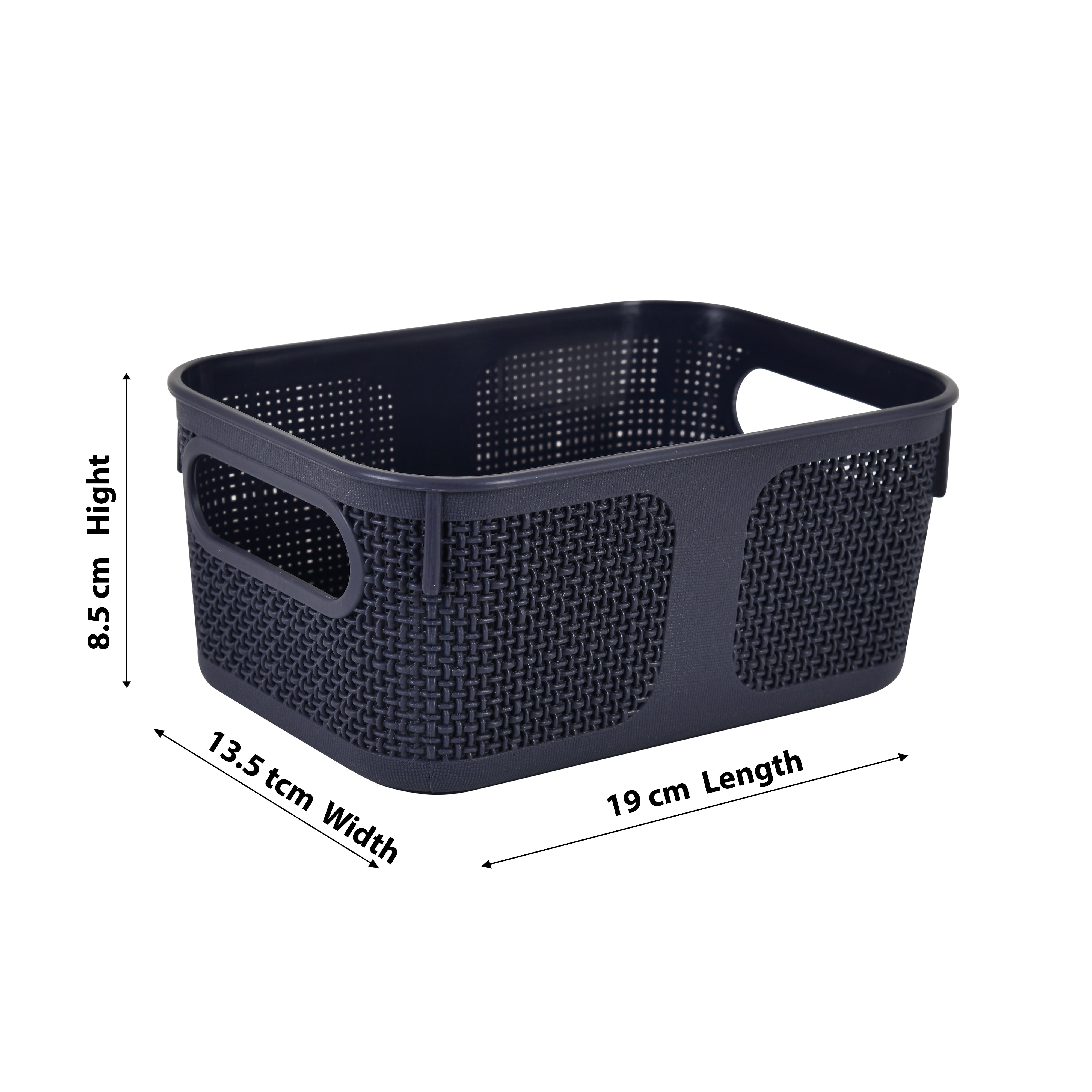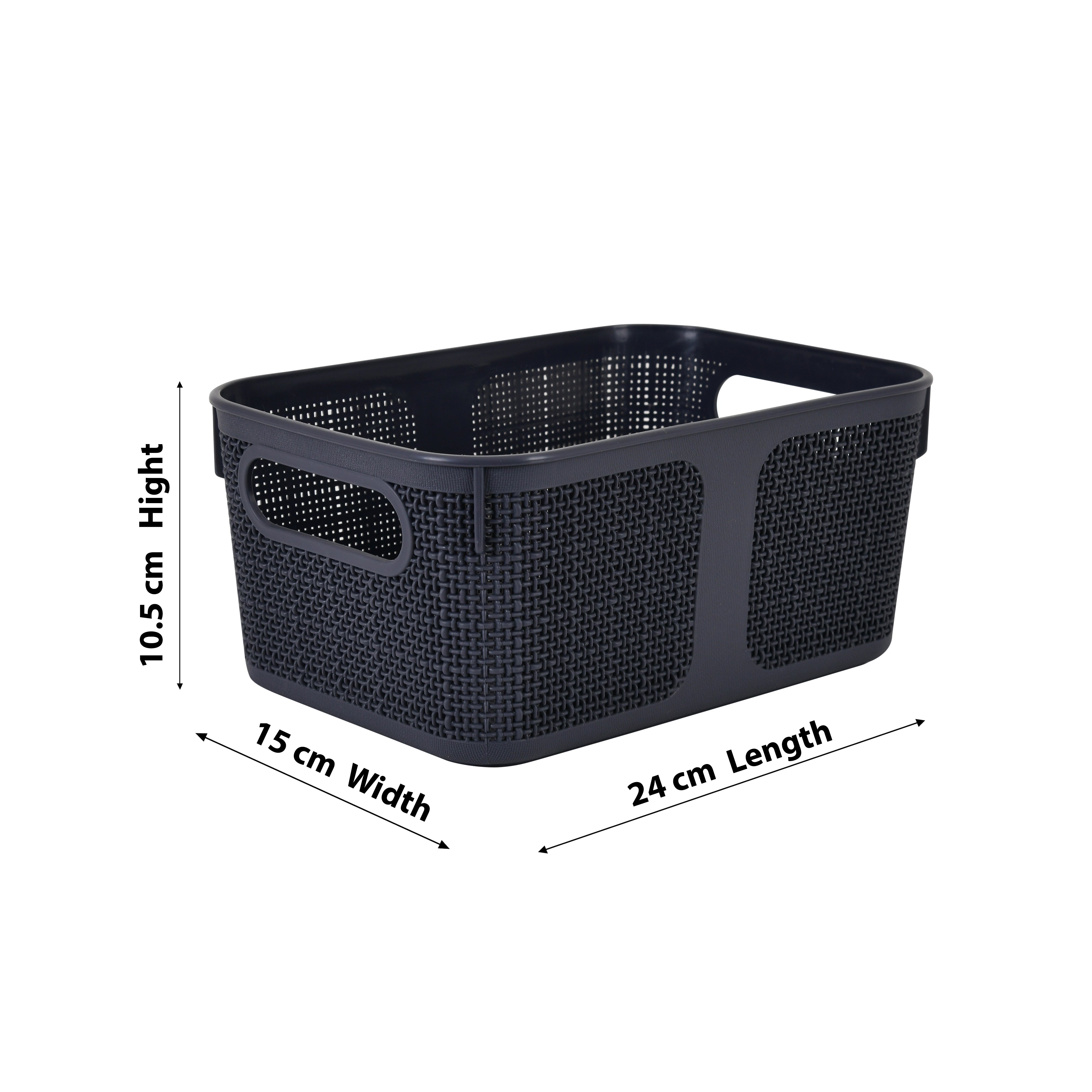 Premium Multi-Purpose Square Textured Storage Basket Set with Handles (Dark Grey Color)