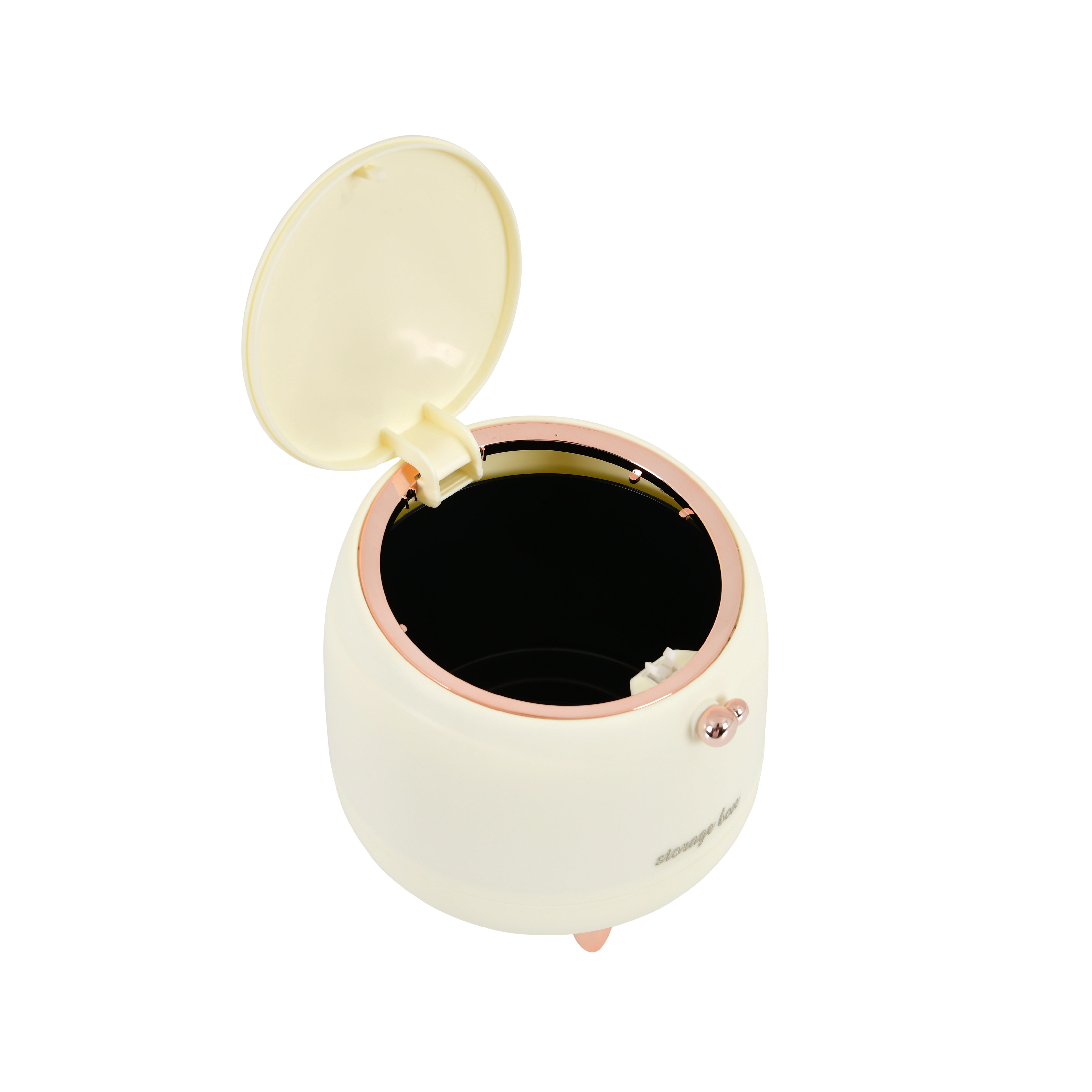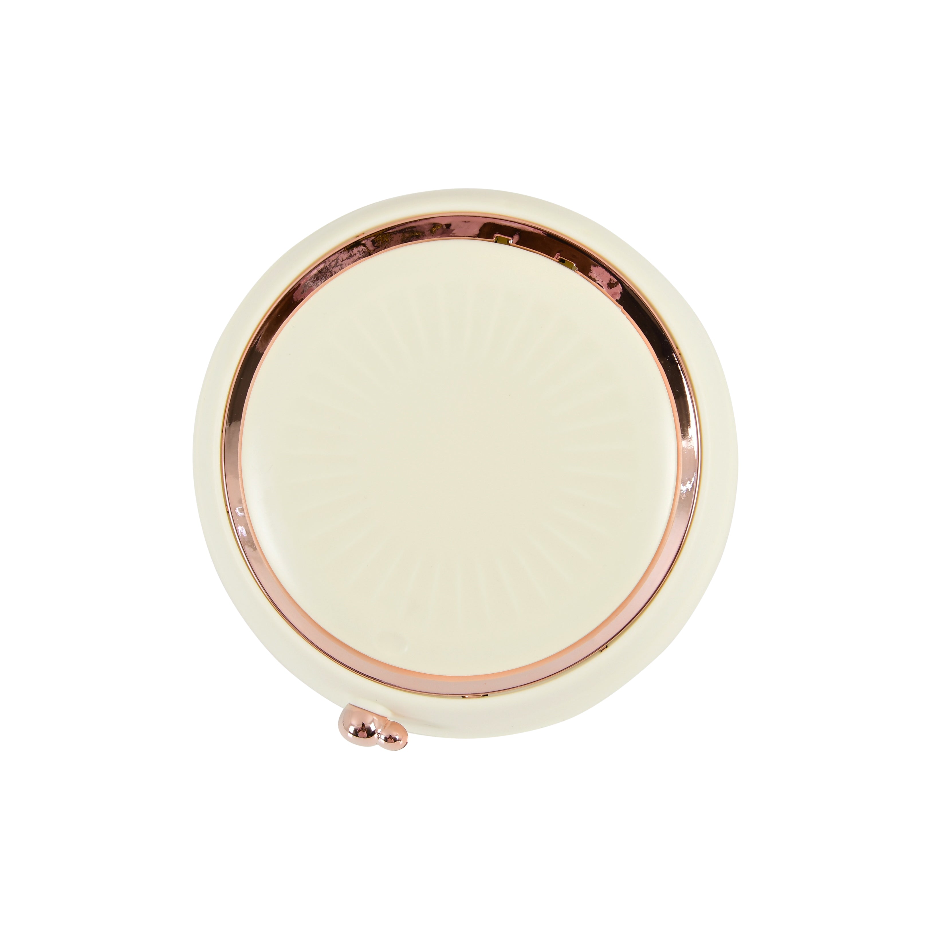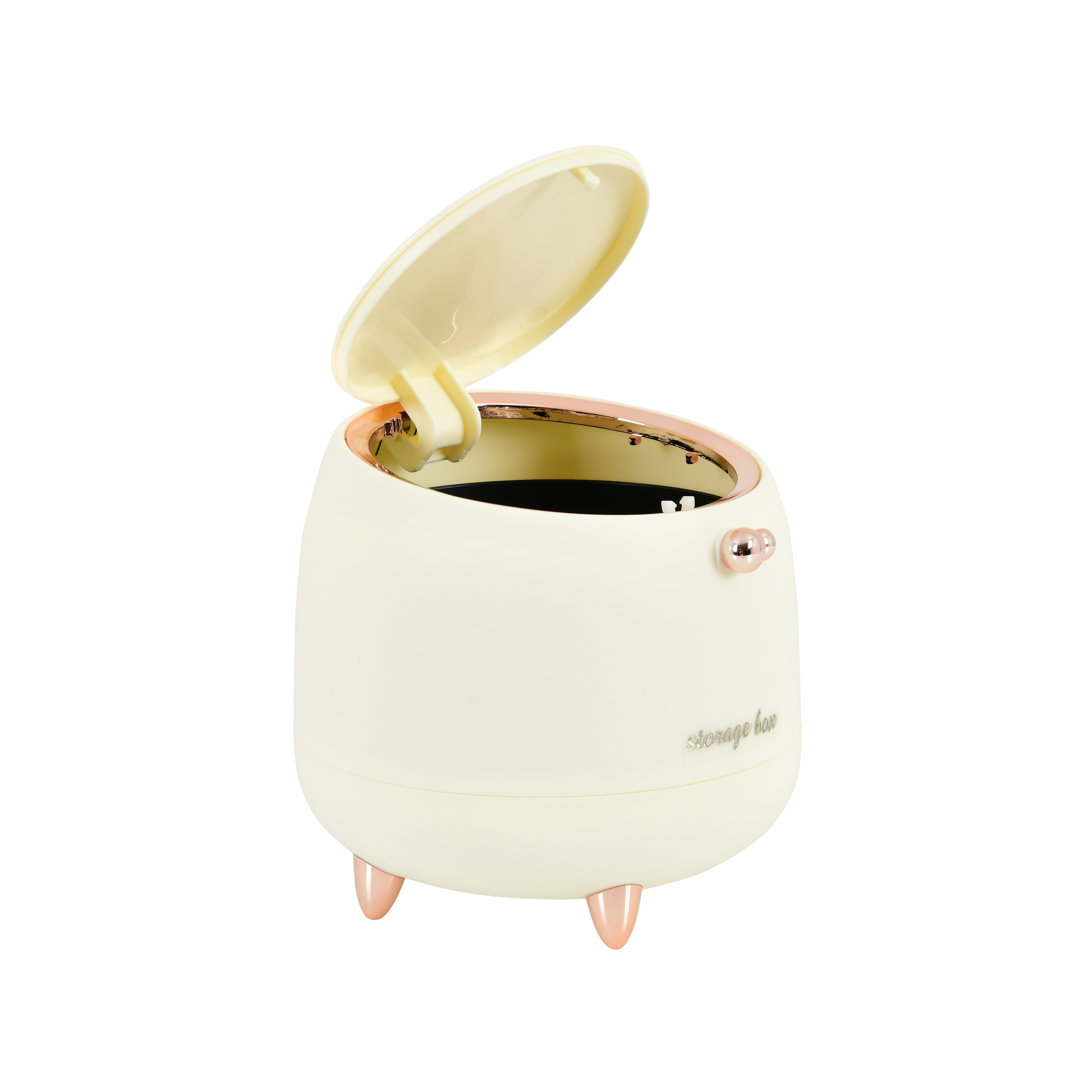 Stylish round storage box, Cream white organizer with lid, Modern plastic storage container, Rose gold accent vanity box, Multipurpose desk organizer, Cosmetic & jewelry storage box, Premium home & office storage solution