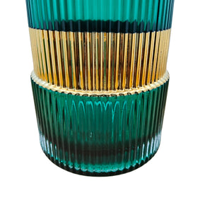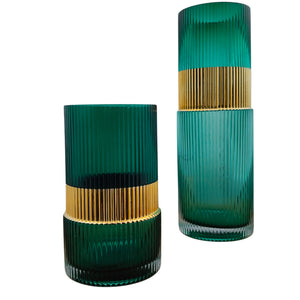 Turquoise Ribbed Glass Vase Set with Gold Accent (Set of 2)