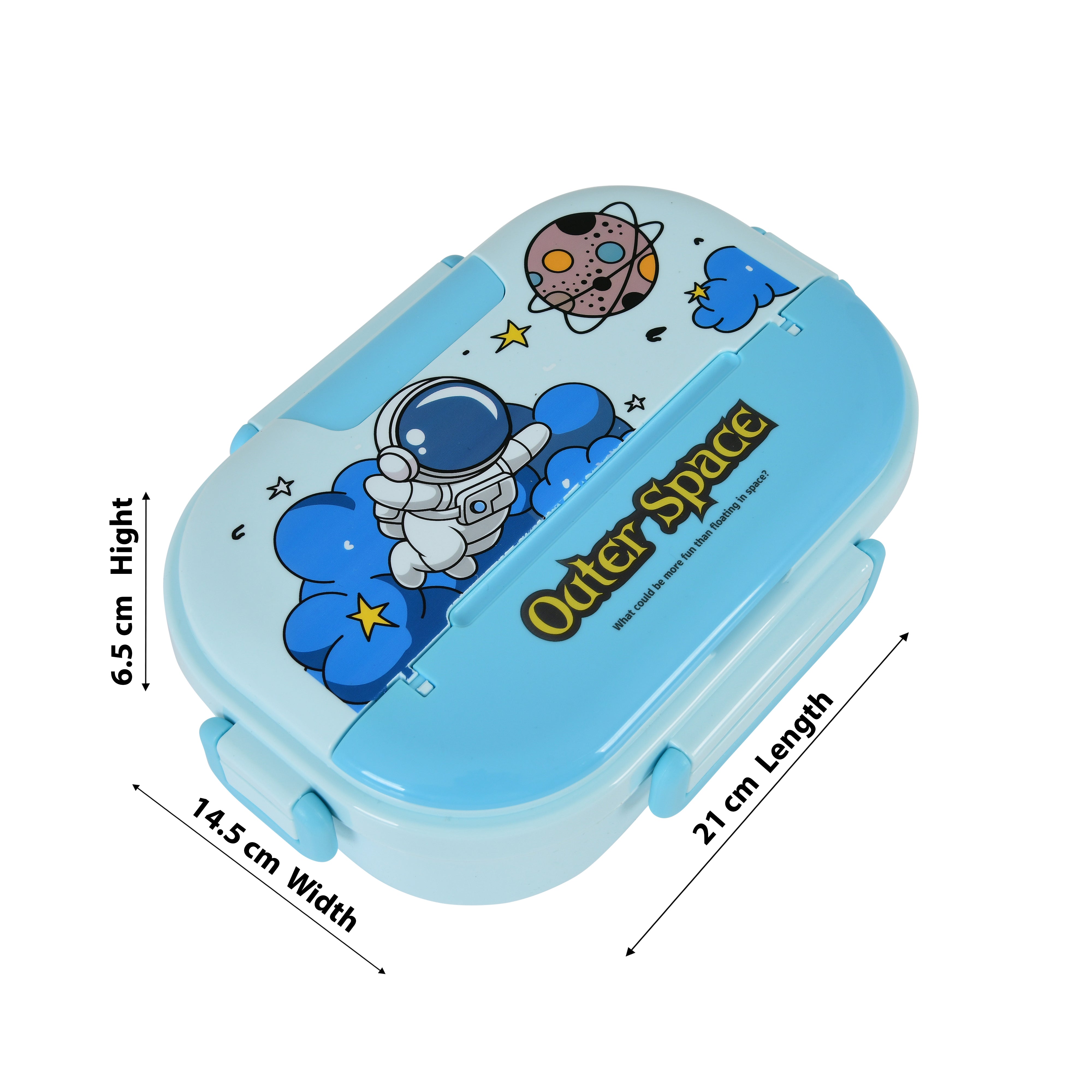 Make mealtime healthier and more enjoyable with this stylish Outer Space Lunch Box, designed for kids and adults alike. With its cheerful blue design and fun astronaut cartoon print, it adds joy to everyday meals while offering high functionality. Built with a premium stainless steel interior and BPA-free, food-grade plastic exterior, this lunch box ensures your food stays fresh, safe, and hygienic throughout the day. Equipped with separate compartments, it allows you to keep your main dish and sides neatly divided. The airtight silicone lining prevents leakage and locks in freshness, while the compact size makes it easy to carry in school bags, office totes, or travel backpacks. The additional small box included is perfect for sauces, dips, or snacks, making this a complete mealtime companion.