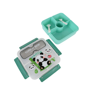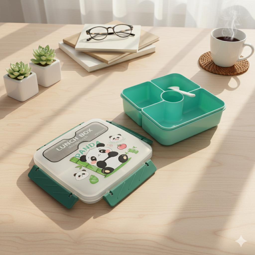 Description: Bring fun and functionality to mealtime with this Square Multi-Compartment Lunch Box – a perfect blend of style, convenience, and durability. Made from BPA-free, food-grade plastic with a hygienic silicone airtight lining, it ensures your meals stay fresh, safe, and spill-free all day. This lunch box is thoughtfully designed with multiple compartments to keep food neatly separated. It also comes with a detachable mini box and a dedicated slot for the included spoon and fork, making it your complete mealtime companion. The playful panda print with bamboo and fruit accents adds a cheerful touch, making it especially appealing for kids while still being practical for office and travel use.