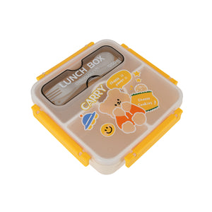 This lunch box is thoughtfully designed with multiple compartments to keep food neatly separated. It also comes with a detachable mini box and a dedicated slot for the included spoon and fork, making it your complete mealtime companion. The playful bear print with cheerful accents adds charm, making it especially appealing for kids while still being practical for office and travel use.