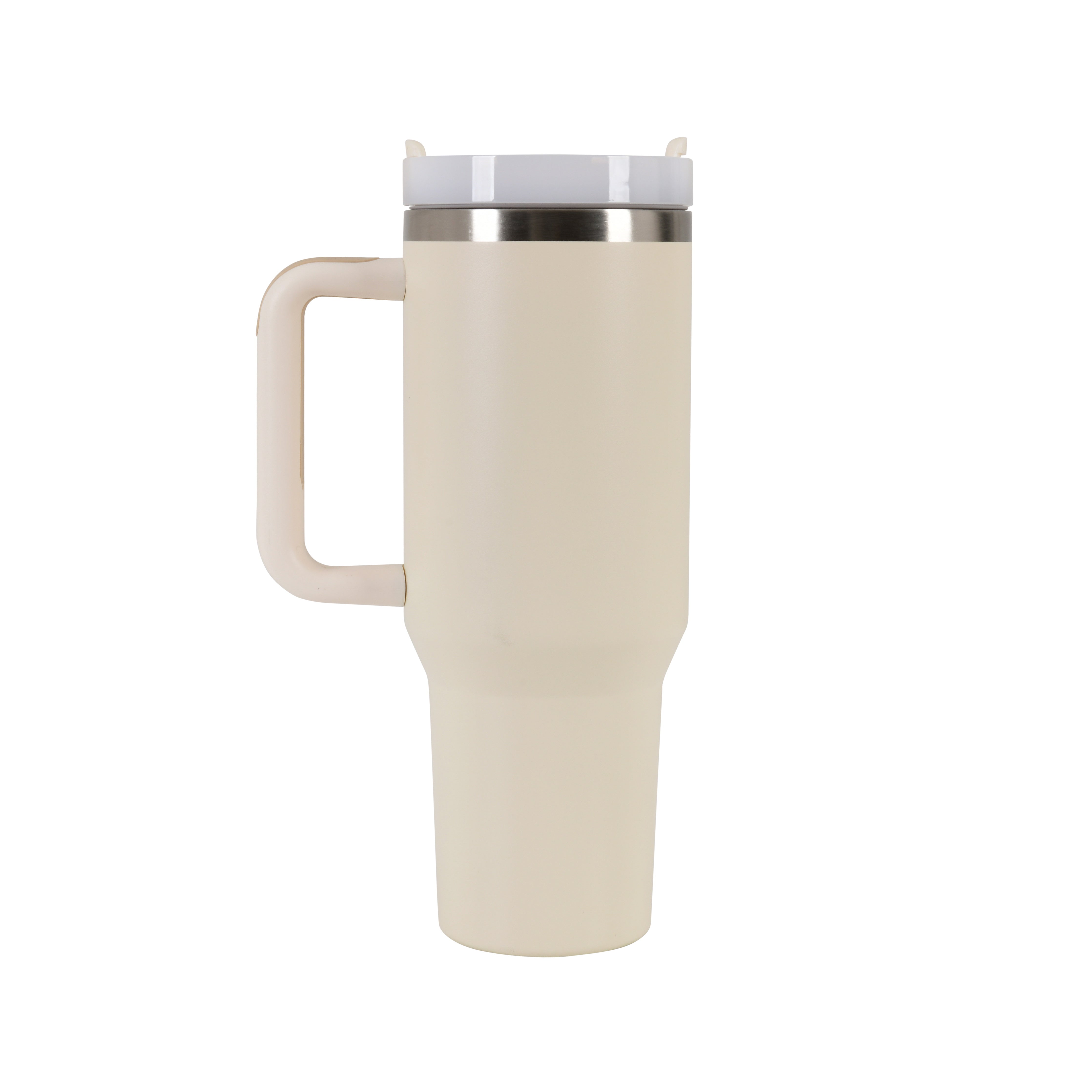 The insulated tall mug in a Off White/Creamish colour, is the ultimate companion for your daily adventures. Crafted from durable BPA-free PP material with a stylish semi-matte finish and a 304 stainless steel interior, this bottle mug keeps your beverages at the perfect temperature while offering a comfortable grip handle for easy carrying. The innovative leak-proof dual lid mechanism caters to your sipping preferences with one lid for the included reusable straw and another for direct sipping, ensuring mess-free sipping on the go. Its tapered base effortlessly fits into cup holders, making it a travel-friendly choice for work, commuting, or exploring new places. Stay refreshed in style with this versatile insulated bottle.