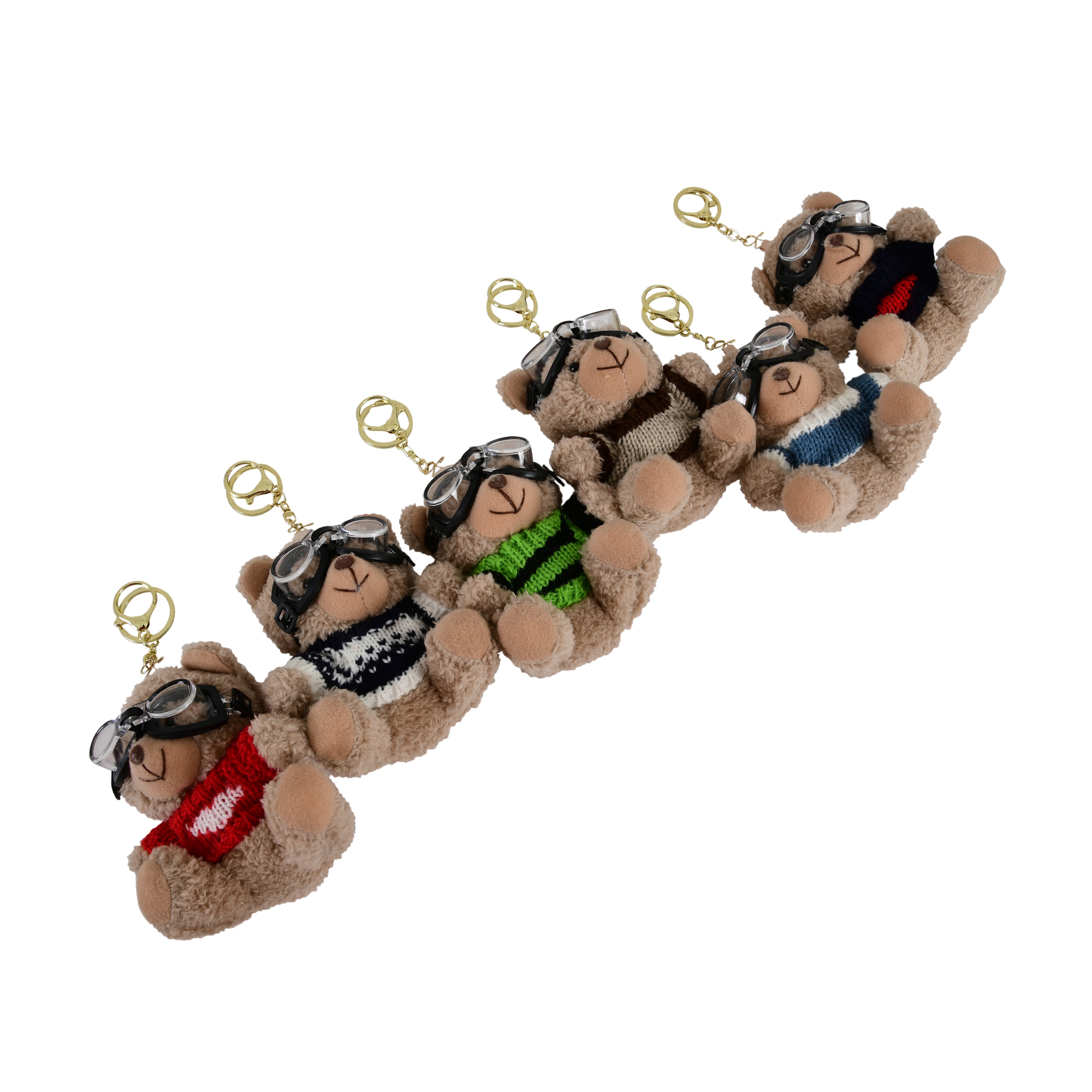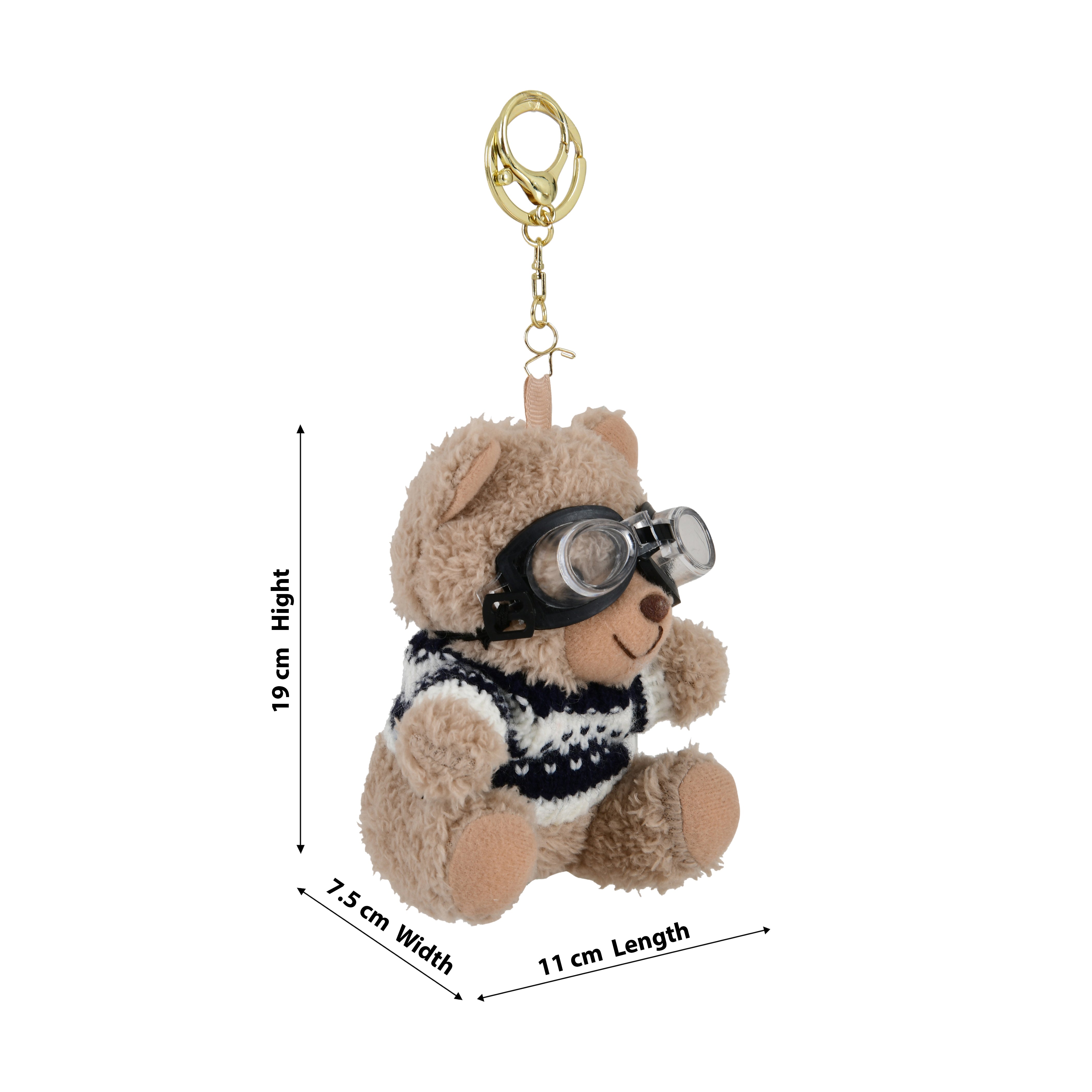 Material: Soft Plush Fabric, Acrylic Knit Sweater, Plastic Goggles, Metal Alloy Key Ring (Gold Finish)