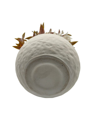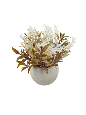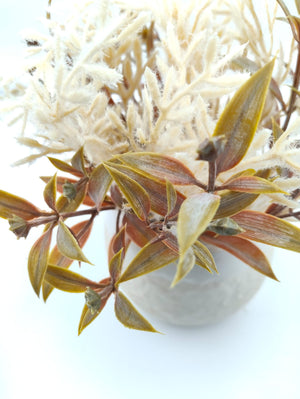 Textured Ceramic Planter with Artificial Brown-Green Leaves & Cream Sprigs
