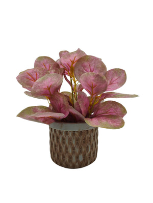 Textured Ceramic Planter with Artificial Pink-Green Leaves