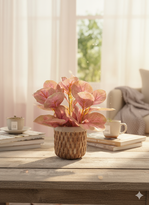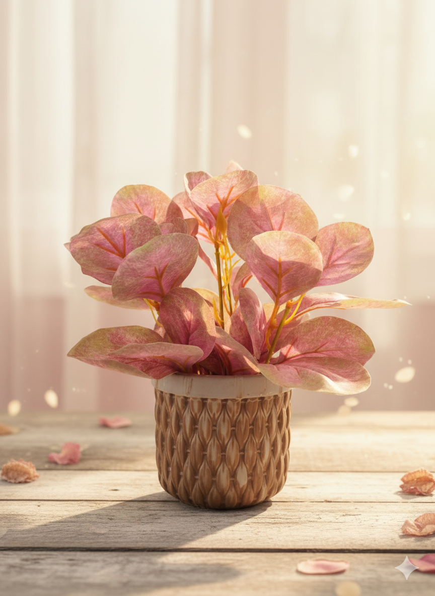 The lifelike pink and green-toned leaves add vibrancy and charm, creating a soothing, natural aesthetic that instantly brightens your surroundings. Low-maintenance and long-lasting, this decorative piece is perfect for bringing a touch of greenery and sophistication to your home or workspace without any upkeep.