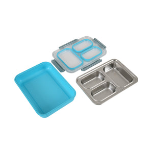 Transparent Stainless Steel Lunch Box (Spill Proof-Blue)