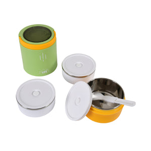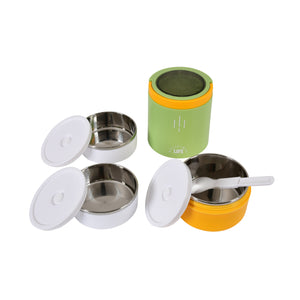 Triple Compartment Stainless Steel Lunch Box (Yellow - Green)