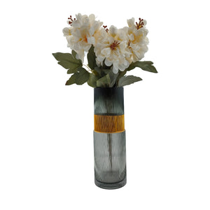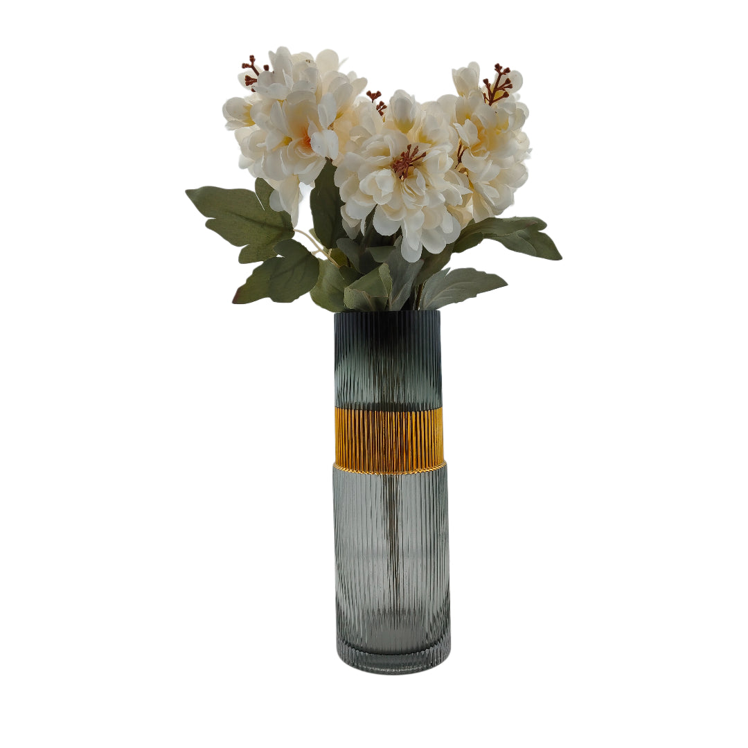 This vase set features a premium smoky grey ribbed glass body combined with a striking gold band detail that adds a luxurious and modern touch. The vertical textured pattern enhances the visual height and elegance, making these vases stand out as décor pieces even without flowers. They are perfect for home décor, office décor, restaurants, studios, and high-end gifting.