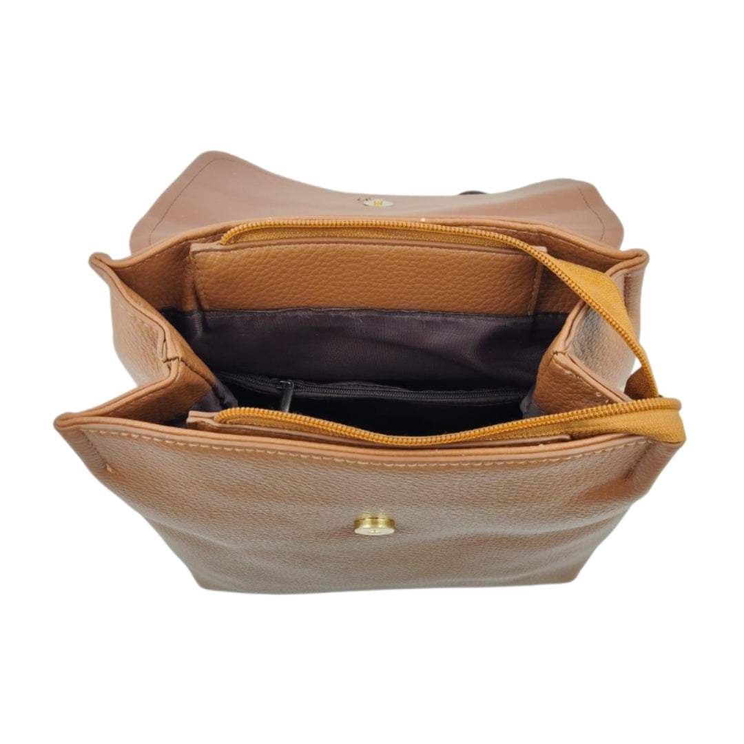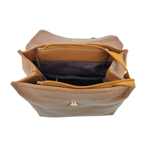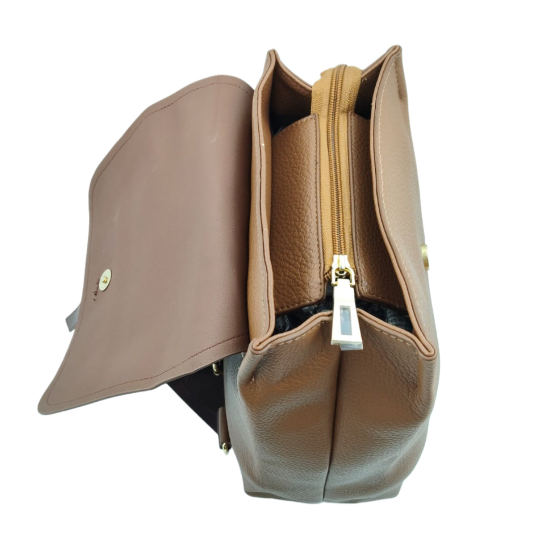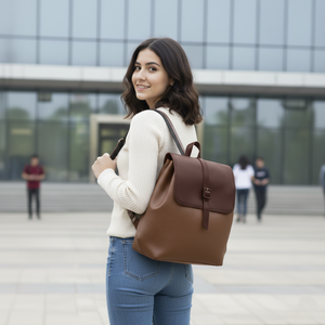Add a touch of elegance to your everyday routine with this Unisex Tan & Brown Leather-Look Backpack, thoughtfully designed for both men and women. Crafted from premium polyurethane (PU) leather, it features a beautiful dual-tone finish — a rich tan textured body paired with a smooth dark brown flap, creating a sleek and timeless look. The bag’s structured form and gold-tone fittings enhance its sophisticated appeal, making it ideal for office, travel, or casual outings.