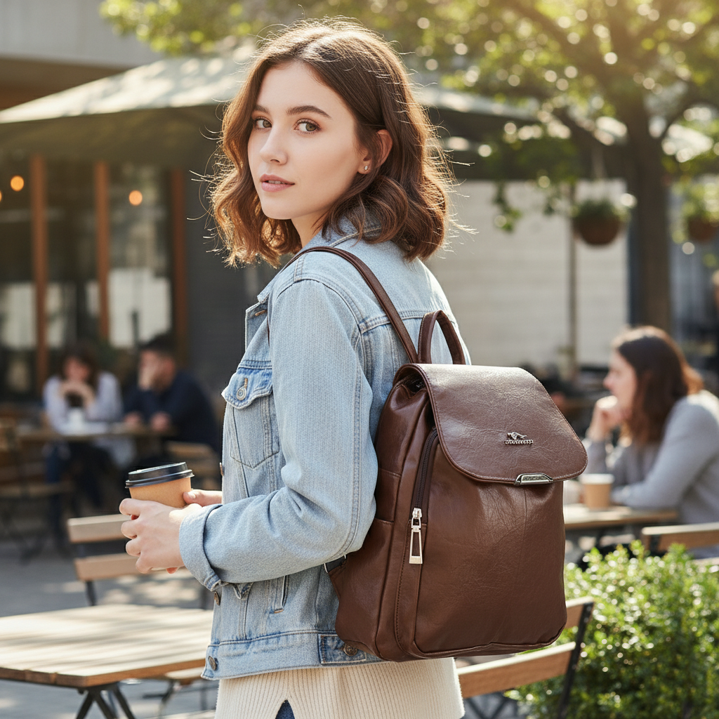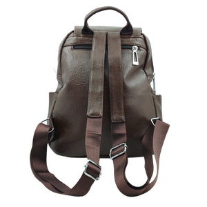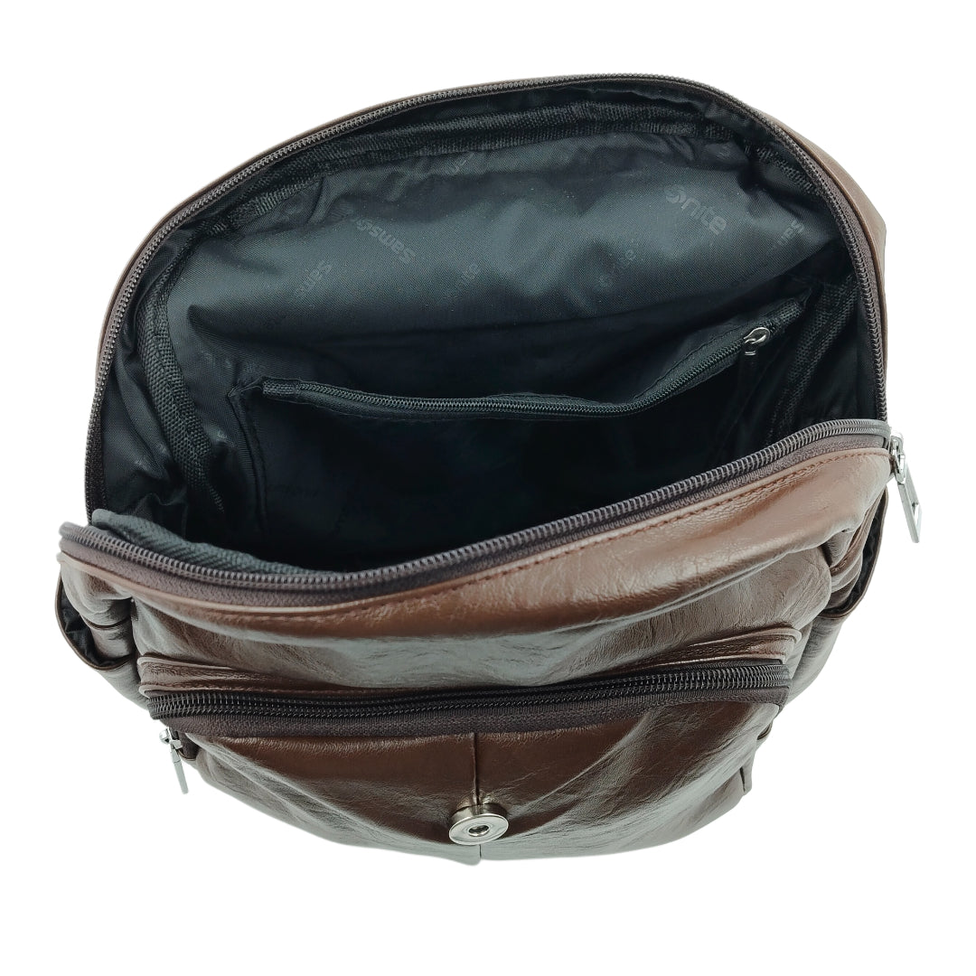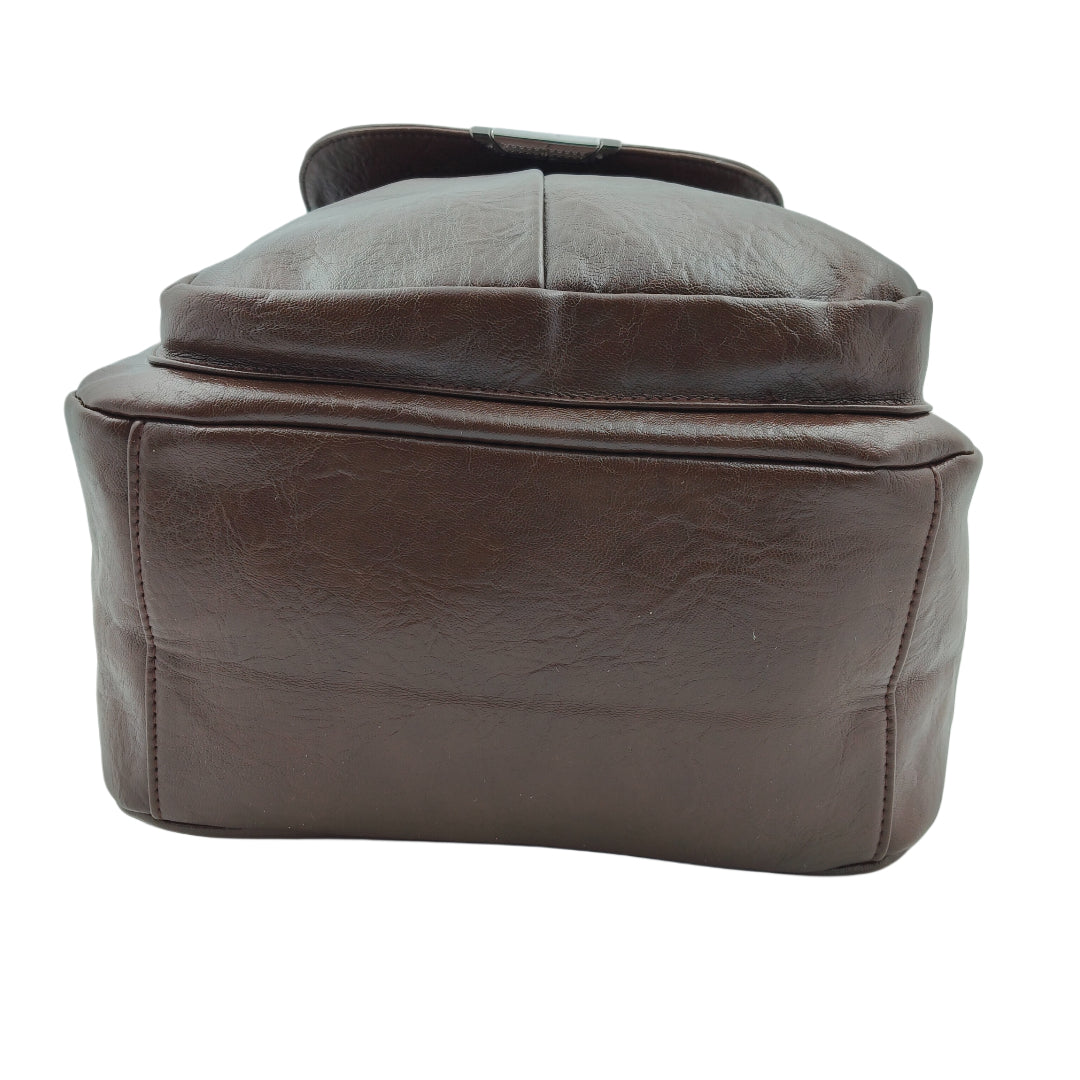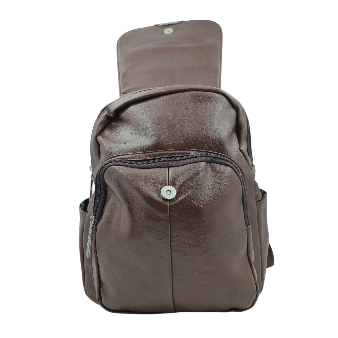 Unisex Brown Leather-Look Backpack – Multi-Pocket Design with Adjustable Straps & Secure Flap Closure