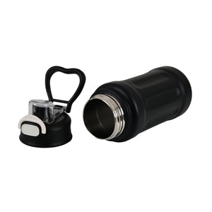The Black Sports Bottle is a stylish and practical hydration companion, perfect for everyday use. Its heart-shaped carrying handle adds flair while ensuring easy, comfortable handling. Crafted from BPA-free, food-grade plastic, it features a flip-top lid with secure lock for leakproof performance during workouts, travel, office, or daily adventures.