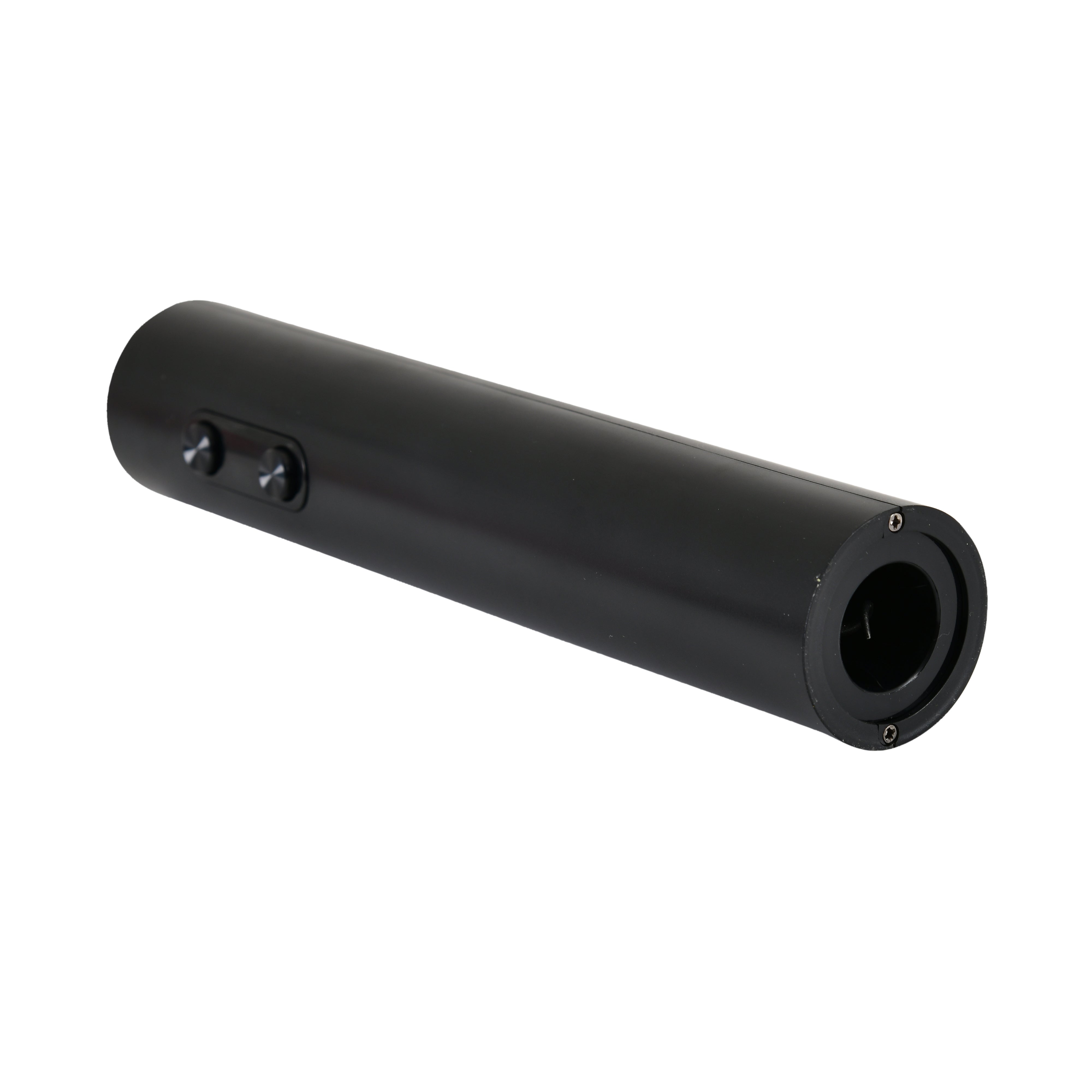 Effortless wine uncorking at the touch of a button. This battery-powered electric wine opener features a sleek matte-black cylindrical design and intuitive two-button operation—press down to remove corks and up to release. Compact (22.5 × 4.5 × 4.5 cm) and lightweight (210 g), it fits perfectly in drawers or bar caddies for quick, mess-free bottle opening.