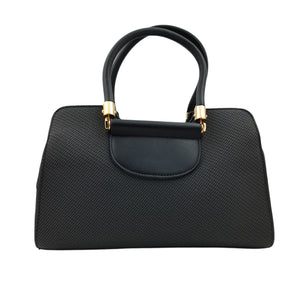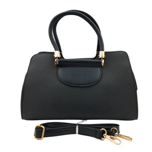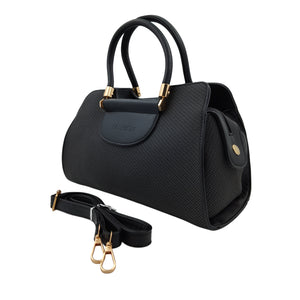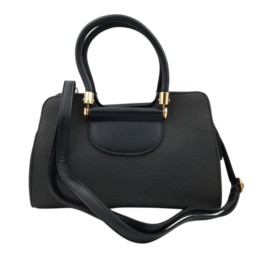 Women’s Black Textured Handbag – Polyurethane Finish with Gold Accents & Adjustable Sling Strap