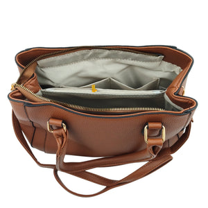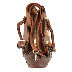 Add elegance and versatility to your collection with this Women’s Brown Textured Handbag, designed with a premium leatherette finish and an eye-catching textured pattern. Enhanced with gold detailing, the bag exudes a modern yet timeless look. It features sturdy dual handles for a classic carry and a detachable sling strap for crossbody convenience. With multiple compartments and secure zipper closures, this handbag ensures your essentials stay neatly organized while elevating your everyday style.
