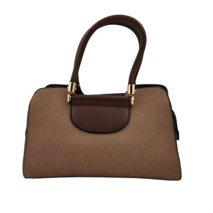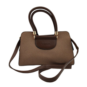 Women’s Brown & Beige Textured Handbag – Polyurethane Finish with Gold Accents & Adjustable Sling Strap