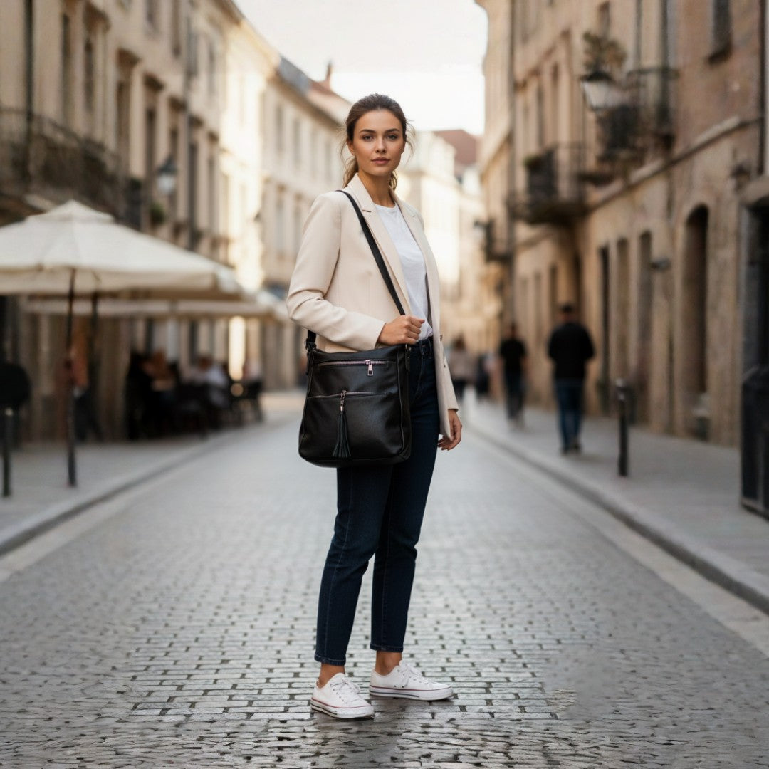 Women’s Everyday Black Casual Sling Bag – Premium PU Leather Crossbody Edition