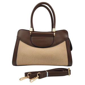 Women’s Brown & Crème Handbag – Polyurethane Textured Finish with Gold Accents & Adjustable Sling Strap