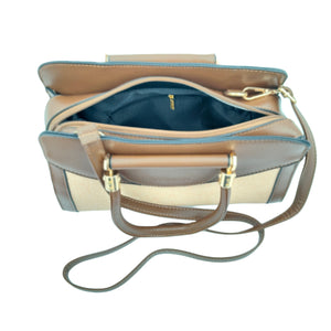 Add a touch of elegance to your collection with this Women’s Brown & Crème Handbag, crafted from premium polyurethane with a refined textured finish. The soft crème body contrasts beautifully with rich brown accents, while polished gold hardware lends a luxurious finish. A perfect blend of fashion and functionality, this handbag is ideal for work, outings, or festive occasions.