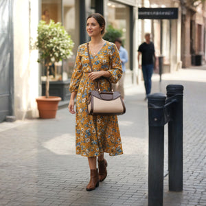 With sturdy dual handles and a detachable, adjustable sling strap, it offers versatile carrying options as a tote or crossbody. The structured silhouette ensures durability and keeps its refined look intact, while the well-planned compartments provide secure storage for everyday essentials.