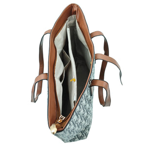 Make a chic statement wherever you go with this Women’s Printed Tote Handbag, featuring a stylish all-over monogram-inspired pattern and premium brown PU leather detailing. Crafted for both fashion and function, this handbag offers a perfect blend of sophistication and everyday practicality. Its soft yet durable canvas-textured body paired with smooth leather handles gives it a luxurious feel that complements any outfit — from casual outings to professional looks.